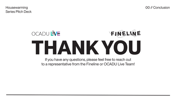 Fineline, a subsidiary project of my alma mater OCAD University, is where I work as a Graphic Designer and project lead on the 'Housewarming' video series. In this dual role, I create both print assets, such as pamphlets, signage, and brochures, and digital media for various social platforms. I also manage the production and conceptualization of the 'Housewarming' series, coordinating with artists and buyers to showcase their personal stories. The limited color palette of black and white presents a unique challenge, allowing me to experiment with geometric shapes, patterns, and typography to effectively communicate the brand's message.